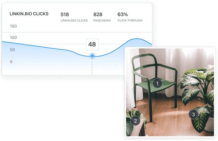 Using Instagram for e-commerce? Linkin.bio lets you add up to 5 links on each Instagram post so you can direct your followers to your website or e-commerce shop. With Linkin.bio's Google Analytics integration you can find out which linked posts are generating sales.